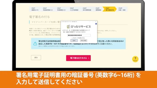 輸入署名用電子證書密碼。