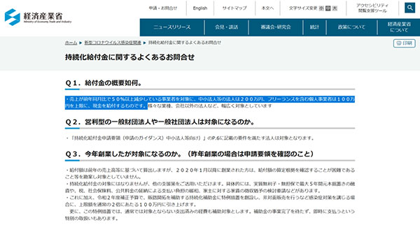 關于「持続化給付金」的申請相關問題咨詢,有意向申請的朋友請在日本經(jīng)濟產(chǎn)業(yè)省官網(wǎng)查詢。