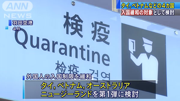 根據(jù)日本媒體此前的報道,日本政府討論的第一批可入境日本的四個國家為:泰國、越南、澳大利亞、新西蘭。對象為出于商業(yè)目的入境日本的商務(wù)人士。